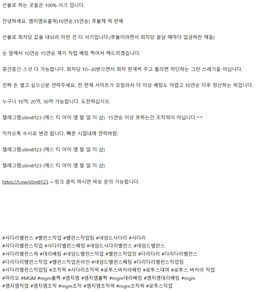 안녕하세요. 엠지엠유출픽(10연승,15연승) 후불제 픽 판매