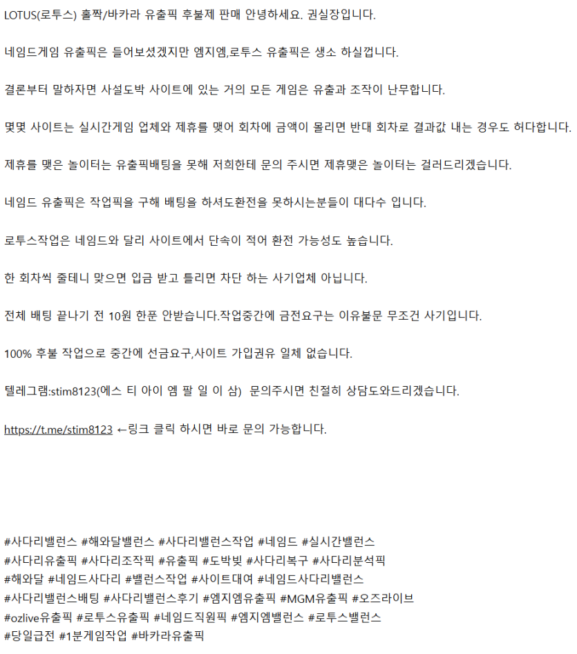 LOTUS유출픽 (홀짝/바카라) 100% 후불제 판매 작업 텔레그램:stim8123