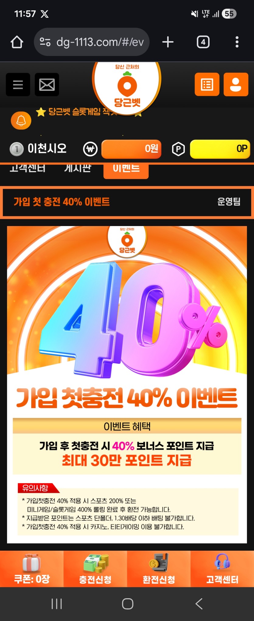 각종 이벤트도 있는데 신규 첫충이 40퍼나 준다